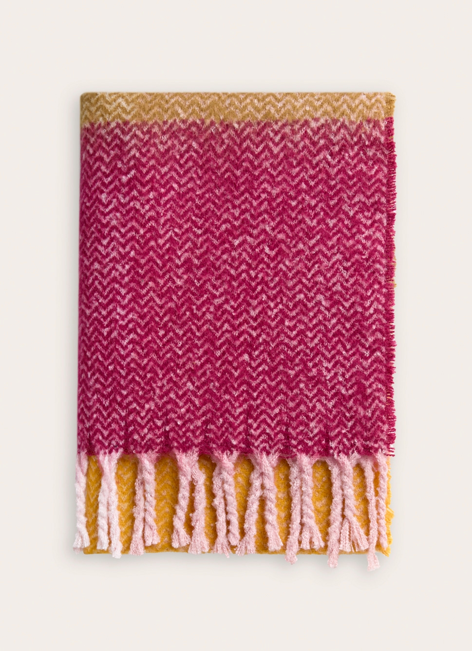 PLAID à FRANGES TISSÉ TEINT MOTIF GÉOMÉTRIQUE MOUTARDE