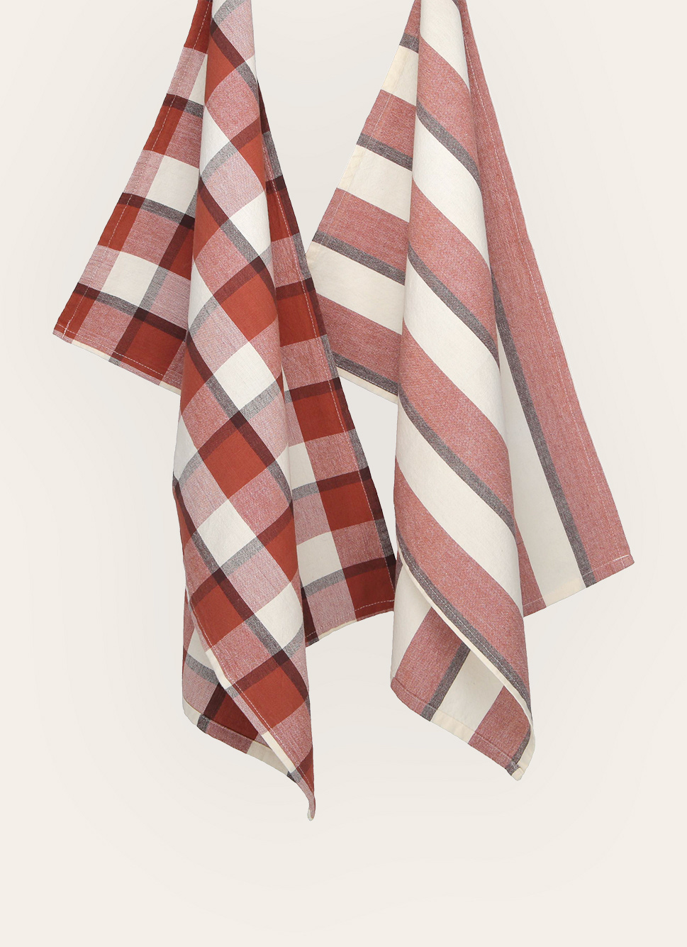 LOT DE 2 TORCHONS CARREAUX & RAYURES BRIQUE