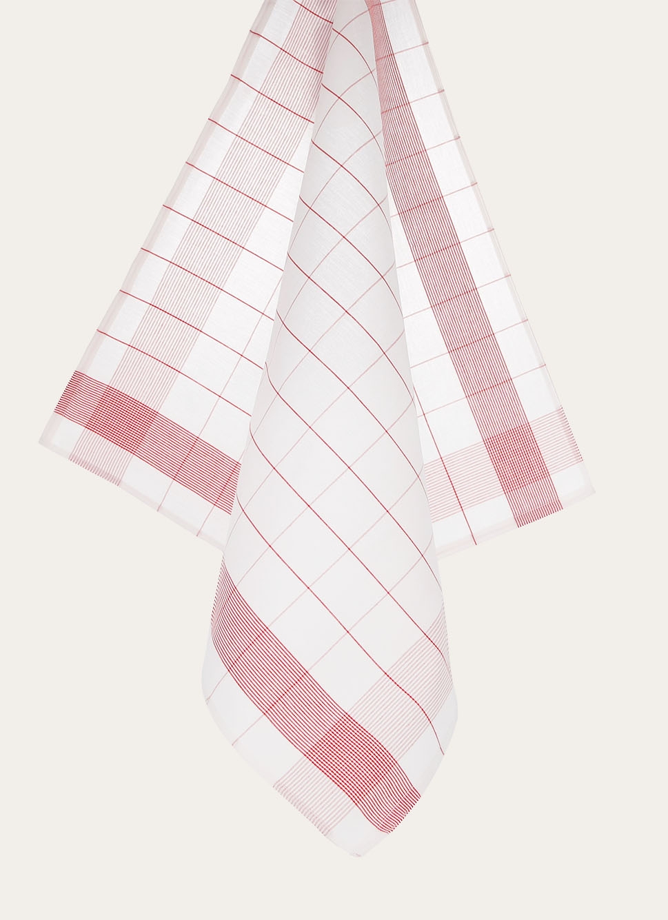 TORCHON RAYÉ EN TOILE DE COTON ROUGE