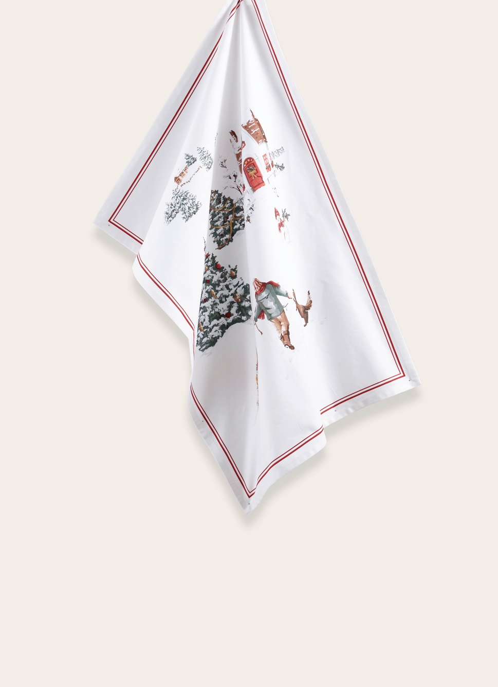 TORCHON SCÈNE DE NOËL MULTI GUIRLANDE