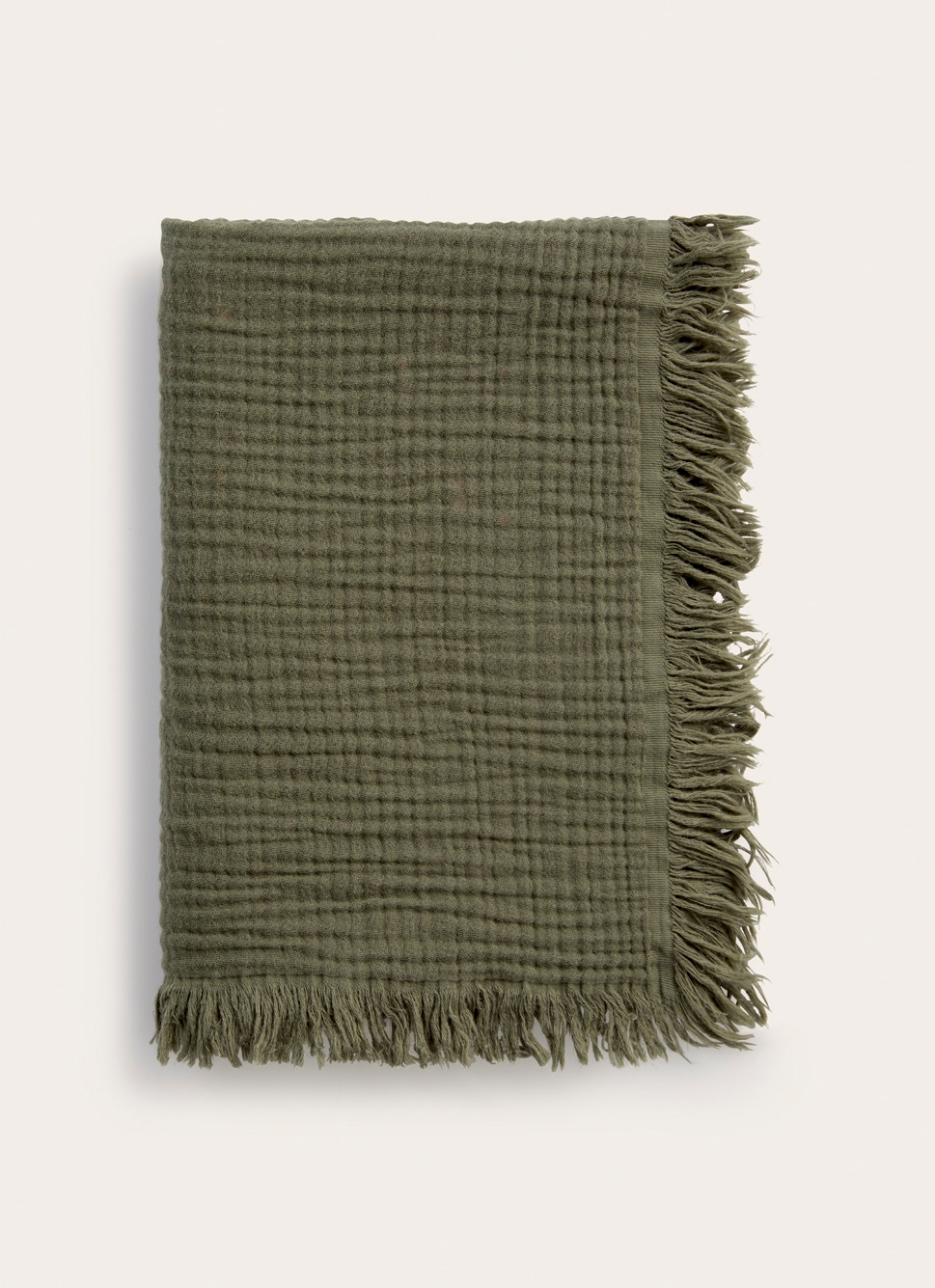 PLAID EN GAZE DE COTON KAKI FONCE