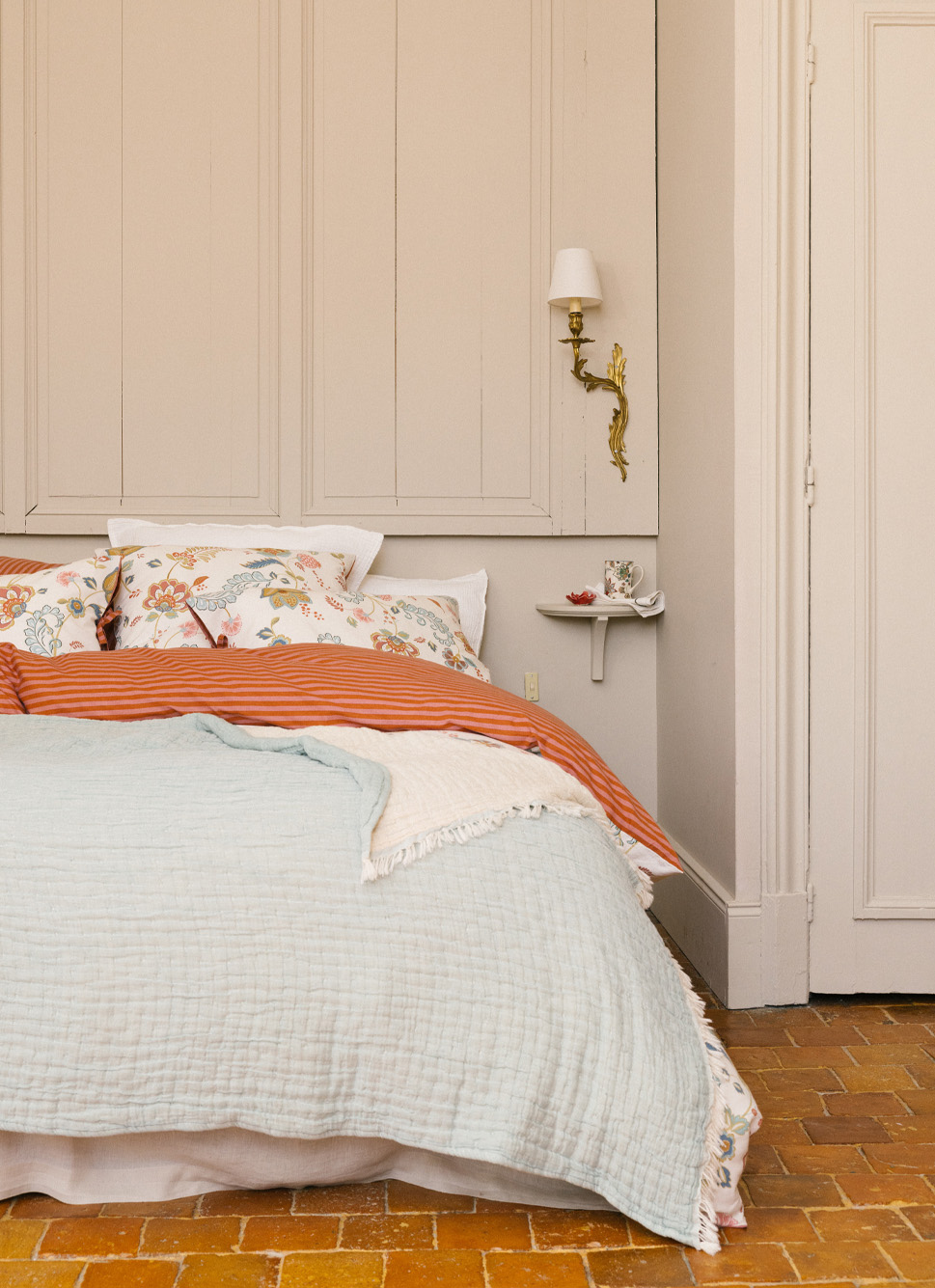 PLAID EN GAZE DE COTON RAYÉ TERRACOTTA