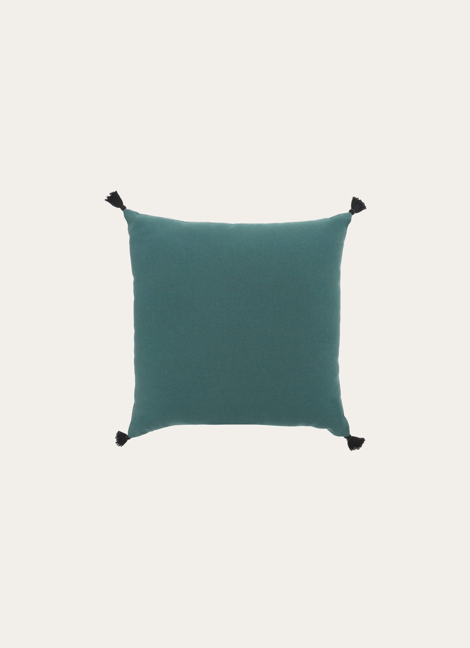 COUSSIN EN COTON UNI AVEC PETITS POMPONS VERT FONCE