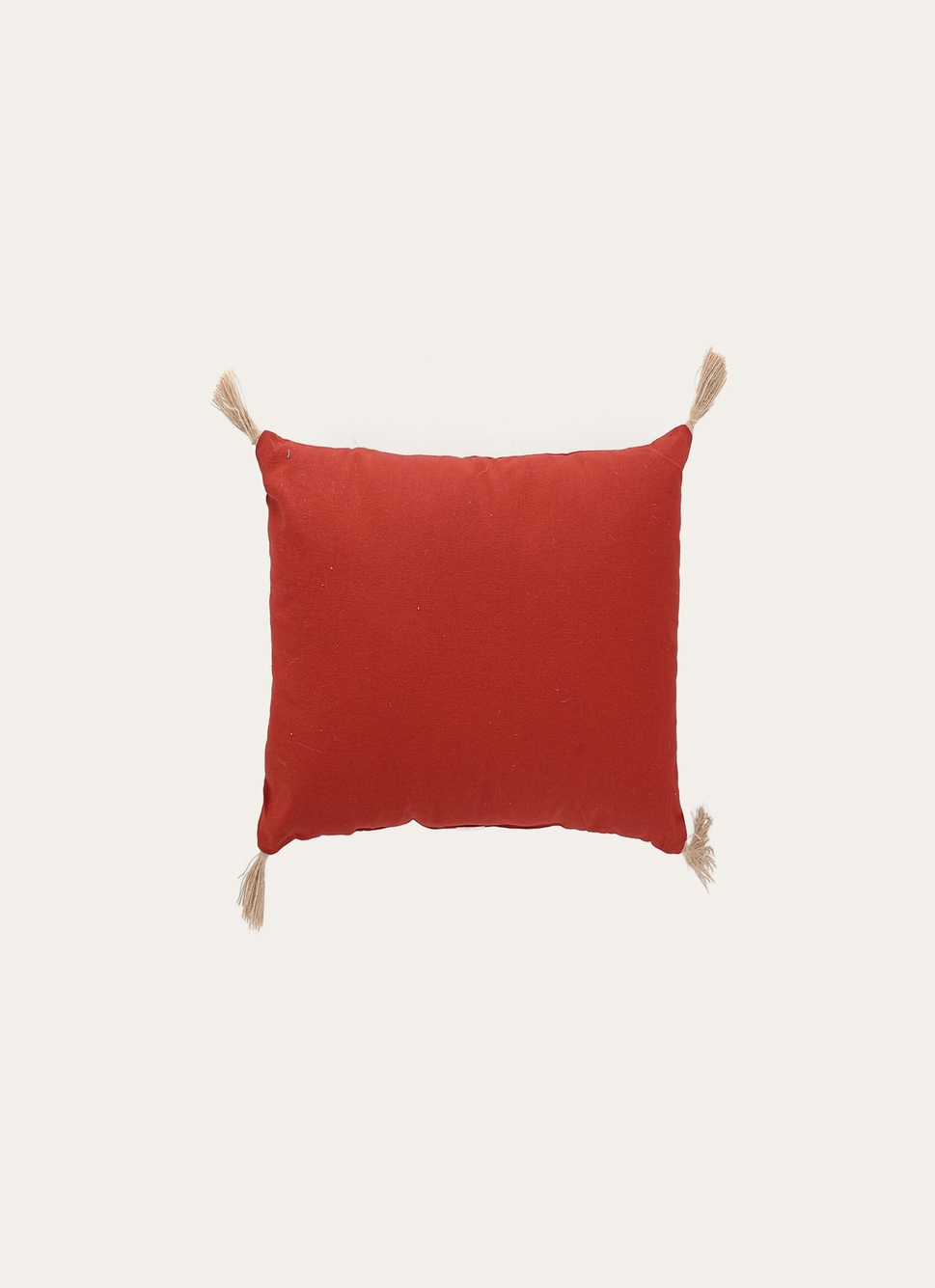 COUSSIN EN COTON UNI AVEC PETITS POMPONS ROUILLE