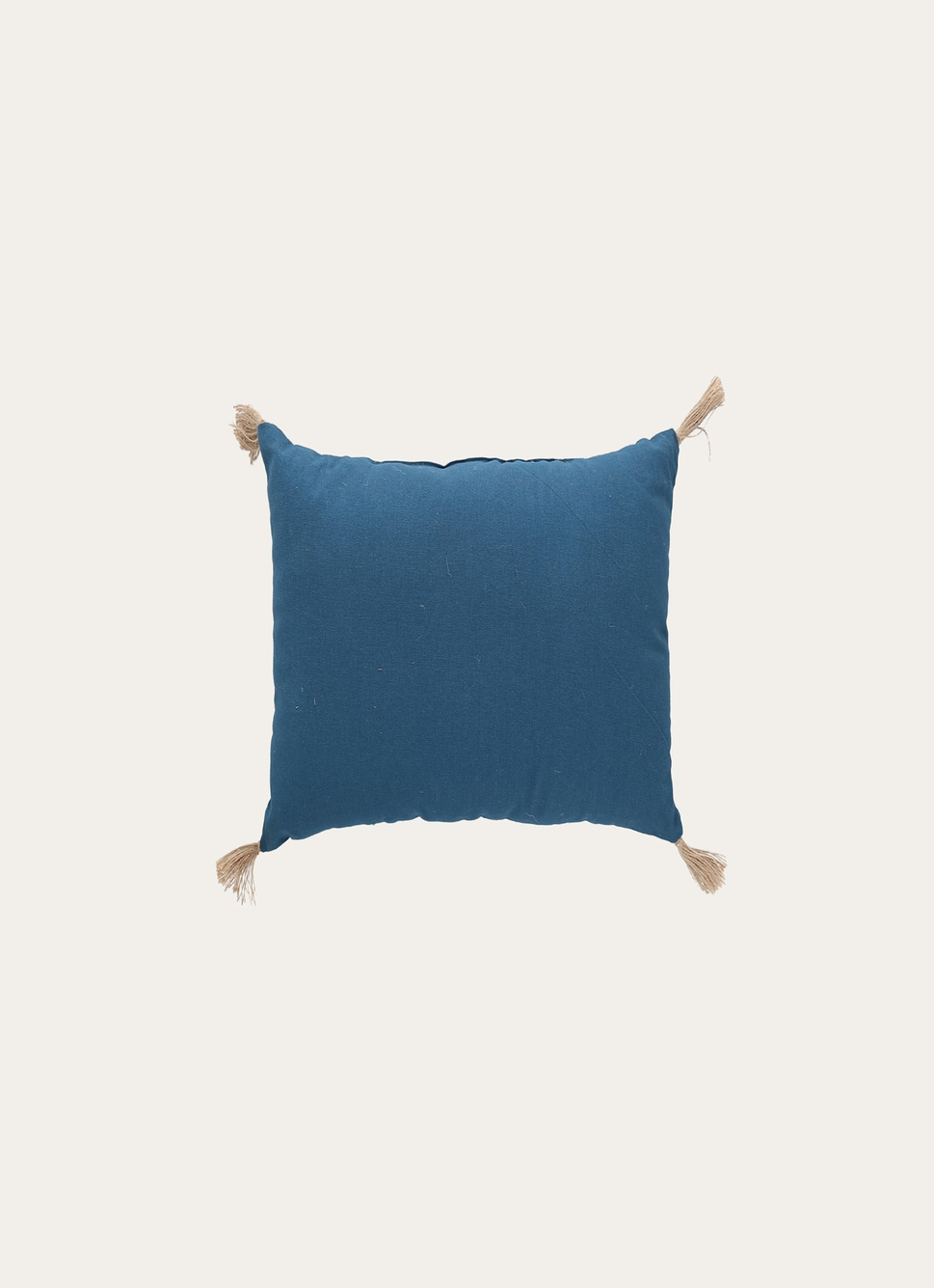 COUSSIN EN COTON UNI AVEC PETITS POMPONS BLEU