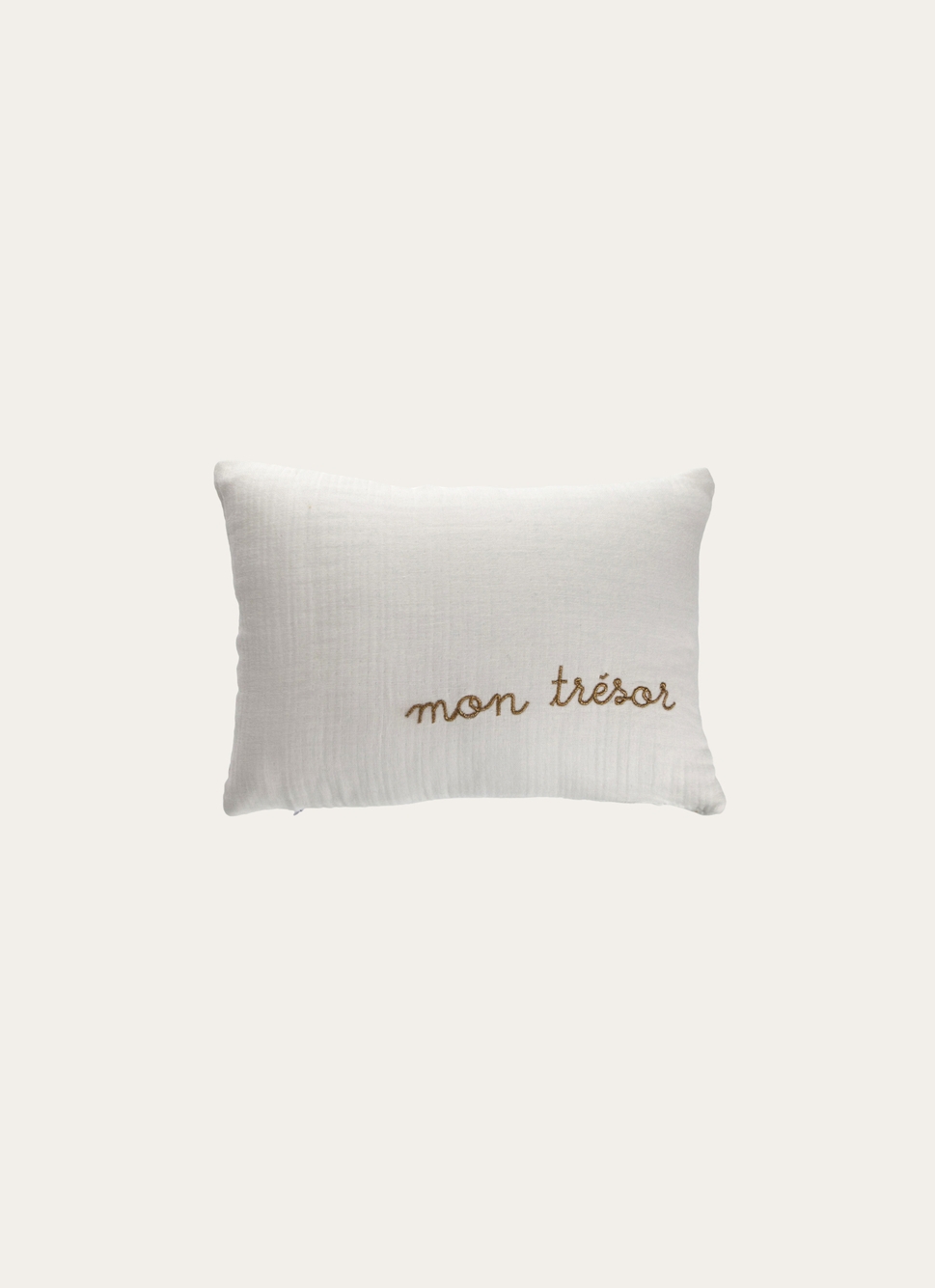 COUSSIN EN GAZE DE COTON BRODERIE FIL DORÉ BLANC