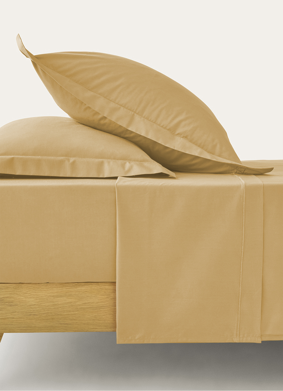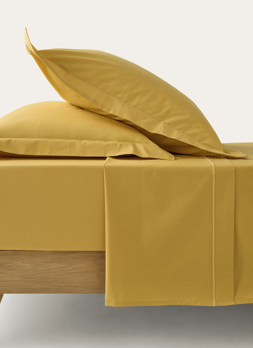 DRAP PLAT UNI EN PERCALE DE COTON MOUTARDE