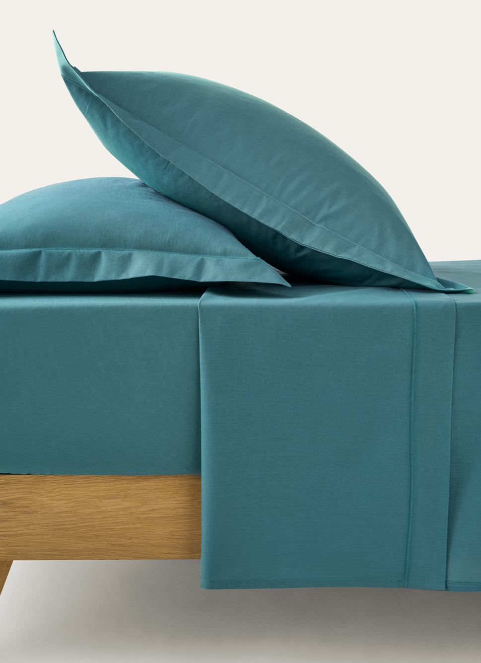 DRAP PLAT UNI EN PERCALE DE COTON BLEU MINÉRAL
