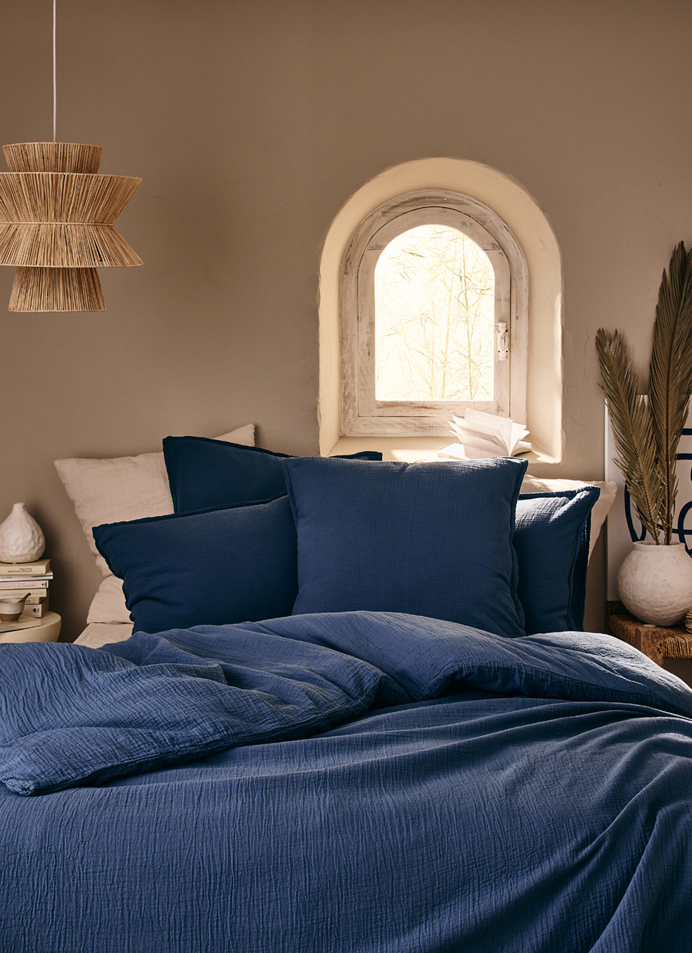HOUSSE DE COUETTE DOUBLE GAZE DE COTON INDIGO