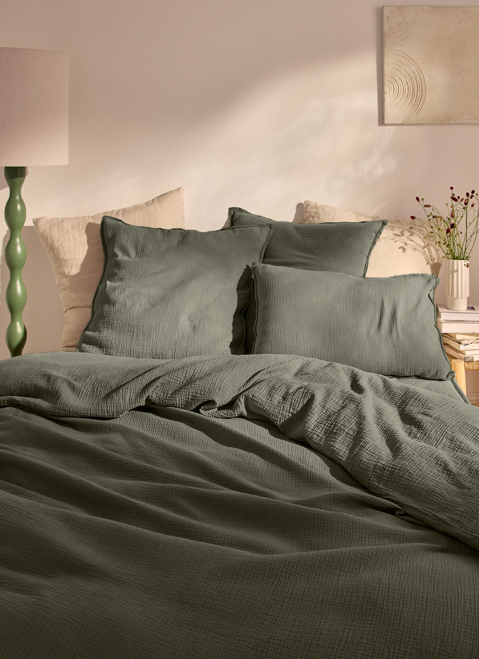 HOUSSE DE COUETTE EN LIN LAVÉ VERT DE GRIS