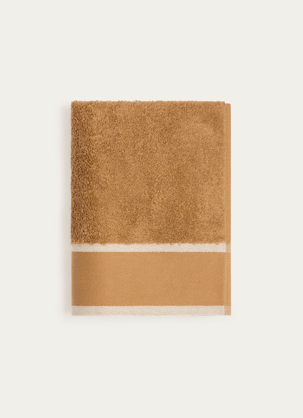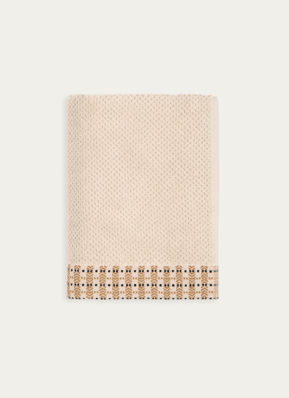 SERVIETTE DE TOILETTE UNIE AVEC LITEAU FANTAISIE BEIGE