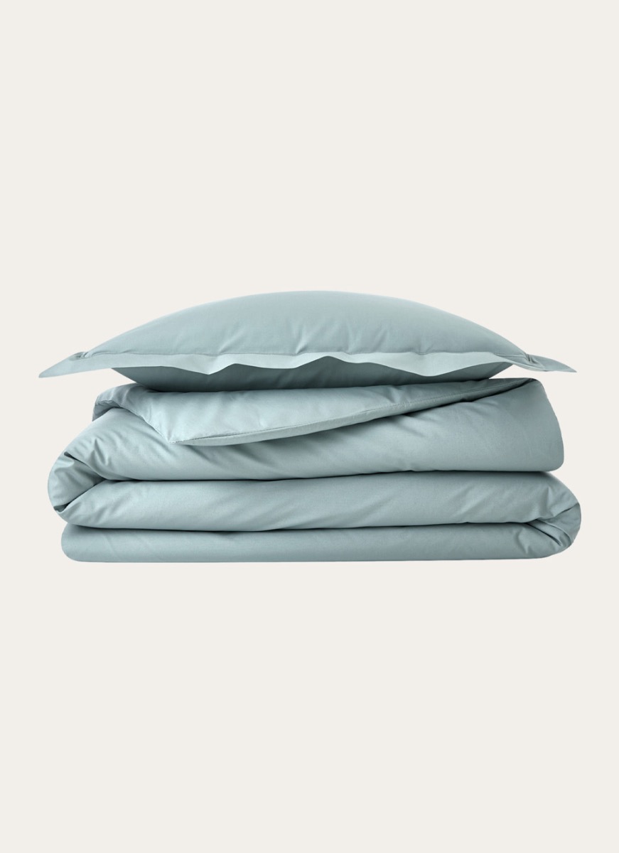 HOUSSE DE COUETTE UNIE EN PERCALE DE COTON VERT DE GRIS