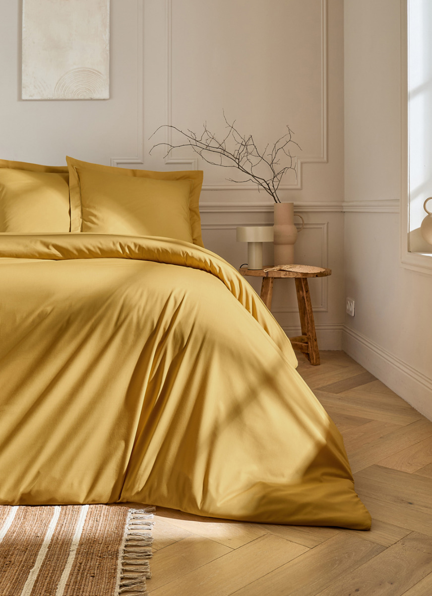 HOUSSE DE COUETTE UNIE EN PERCALE DE COTON MOUTARDE