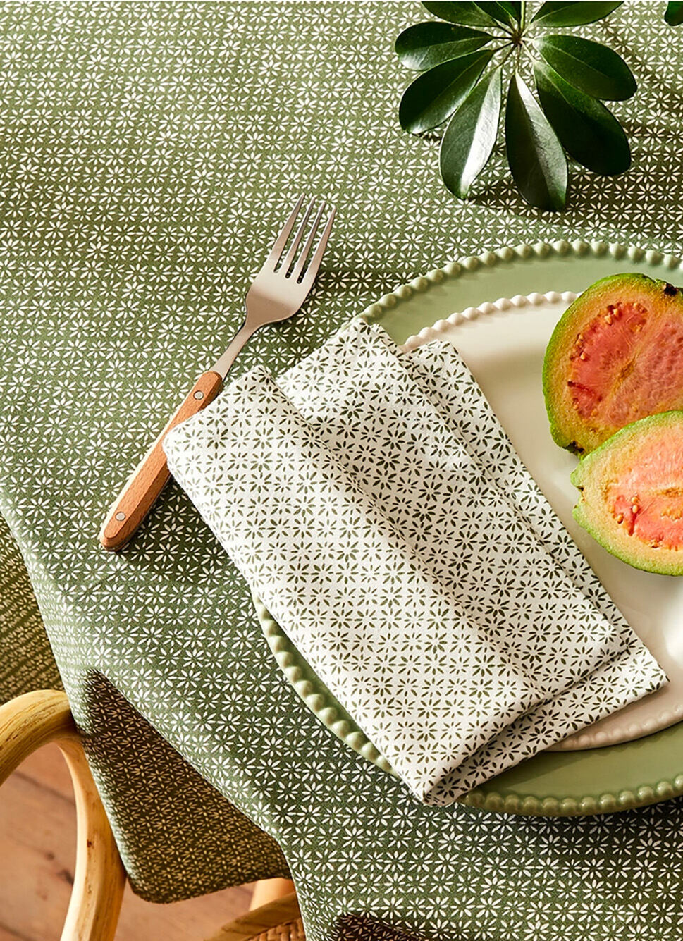 NAPPE EN COTON ENDUIT IMPRIMÉ PETITES FLEURS VERT