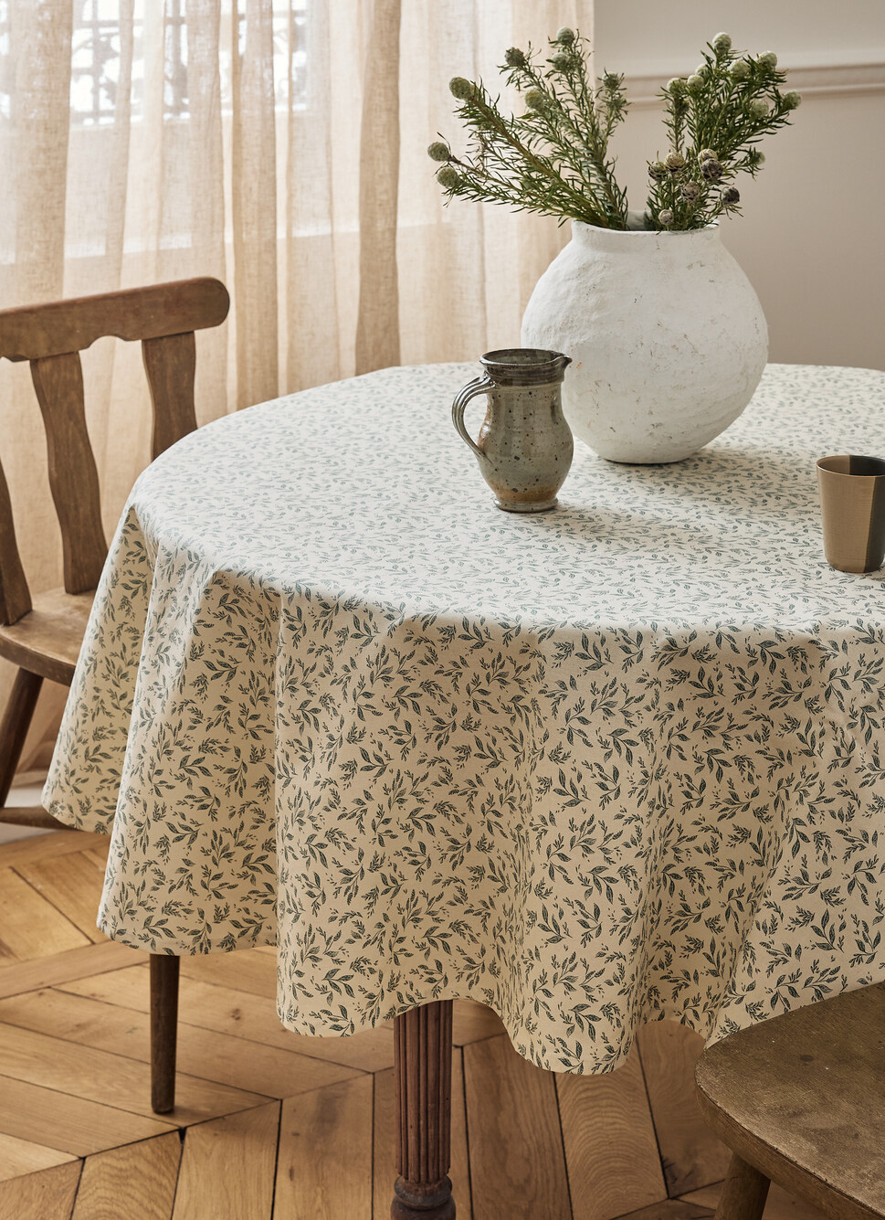 NAPPE ENDUITE à MOTIF VÉGÉTAL BEIGE / VERT THYM
