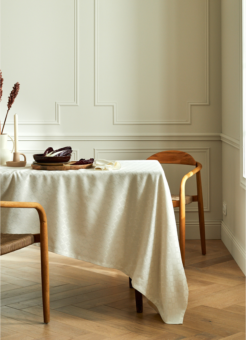 NAPPE EN COTON FLAMMÉ AVEC FINITION BOURDON BLANC CASSÉ