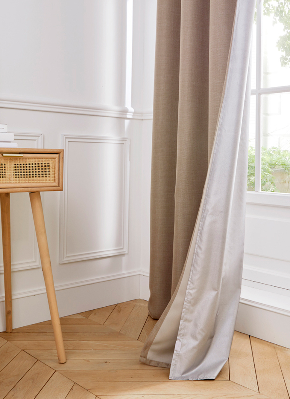 RIDEAU OCCULTANT EFFET NATUREL ET CHINÉ BEIGE
