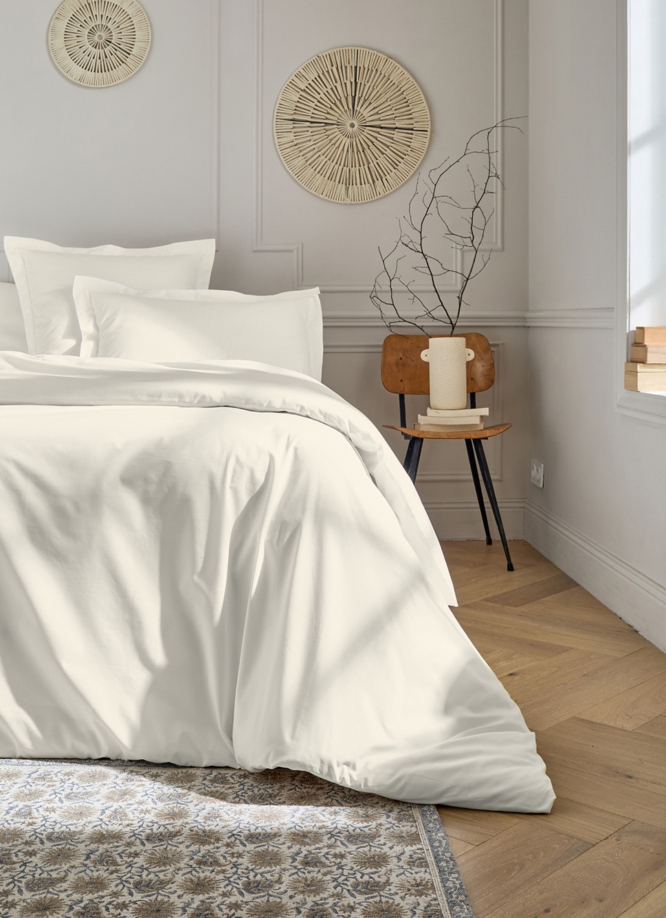 HOUSSE DE COUETTE UNIE EN PERCALE DE COTON ECRU