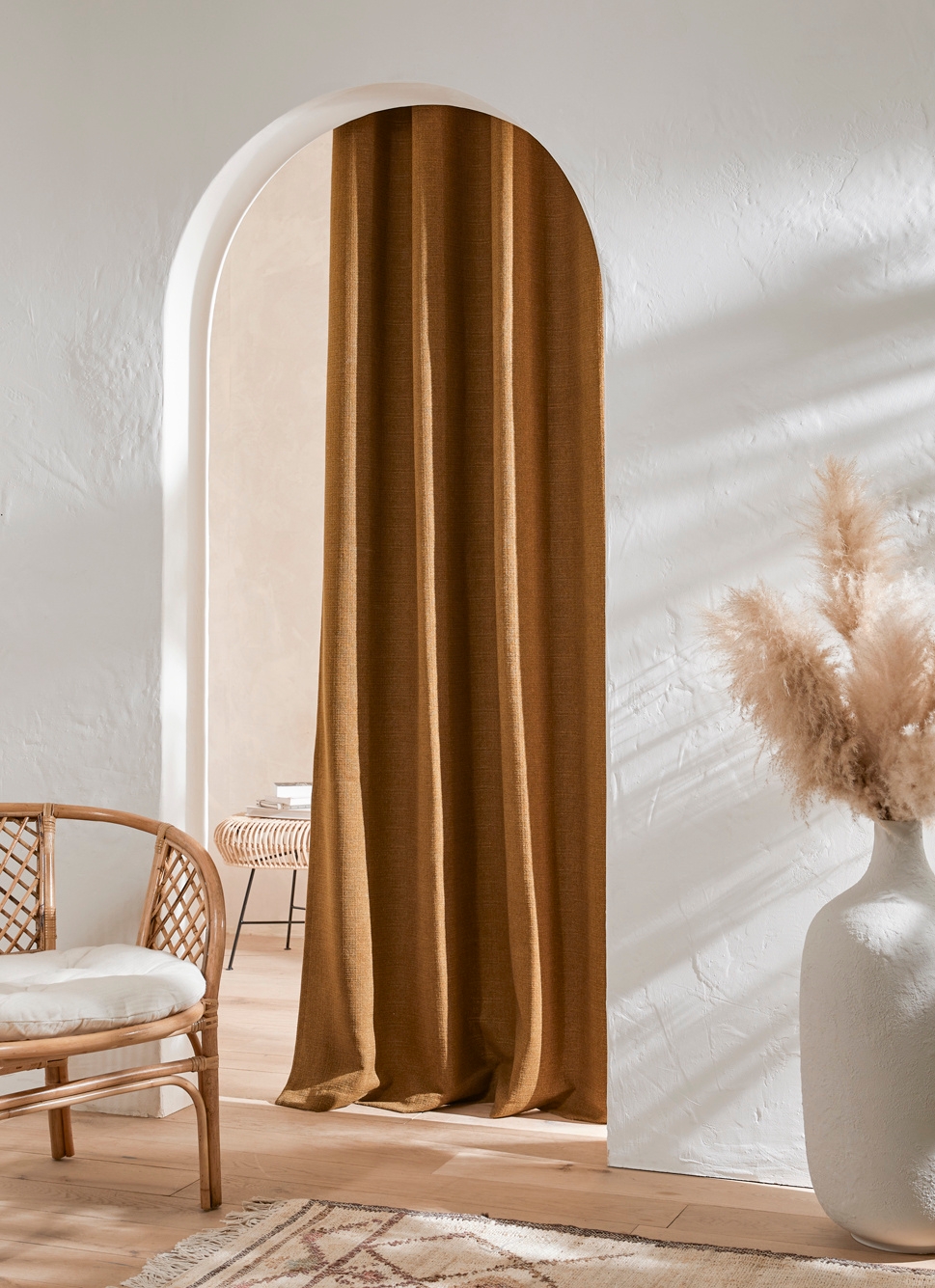 RIDEAU UNI LÉGER EN BOUCLETTE TAMISANT CARAMEL