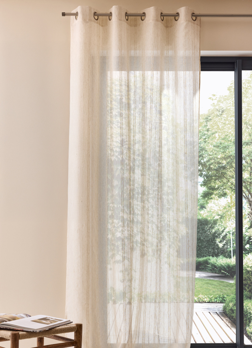 VOILAGE EFFET MOUCHETÉ ET RAYURES FINES NATUREL