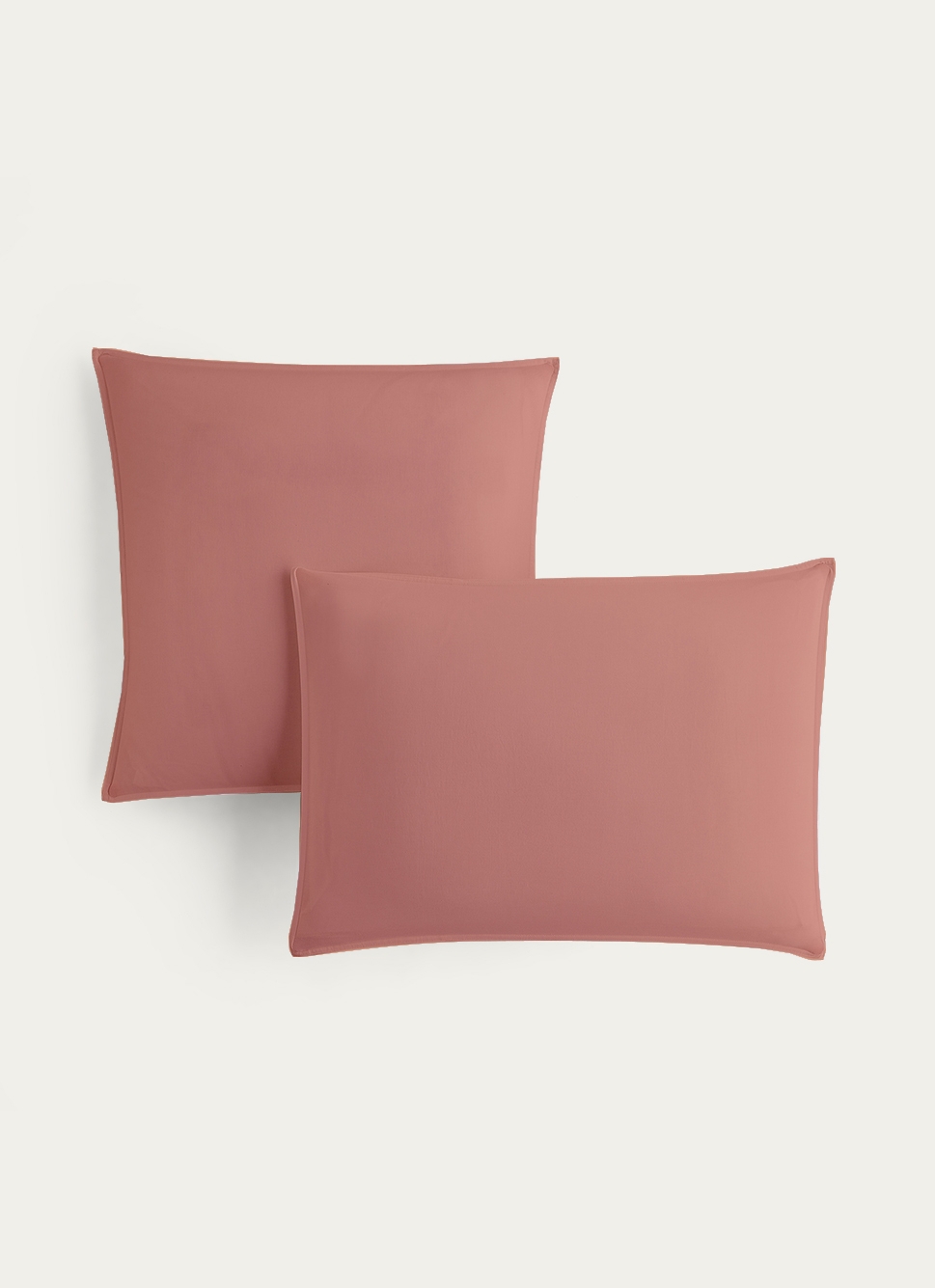 TAIE D'OREILLER UNIE EN COTON LAVÉ BIO ROSE