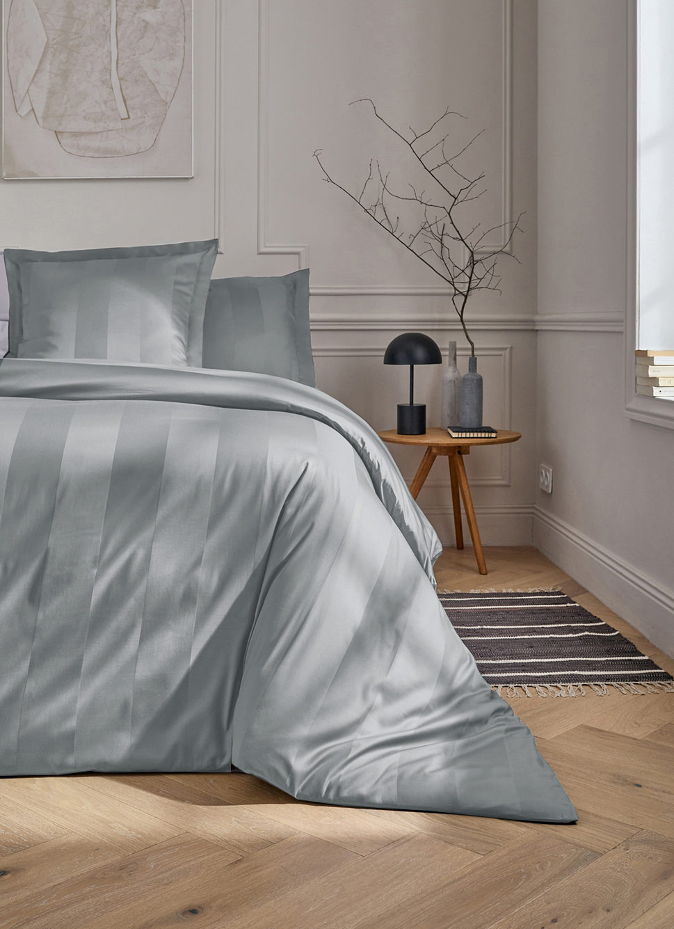 HOUSSE DE COUETTE RAYÉE EN SATIN DE COTON GLACIER