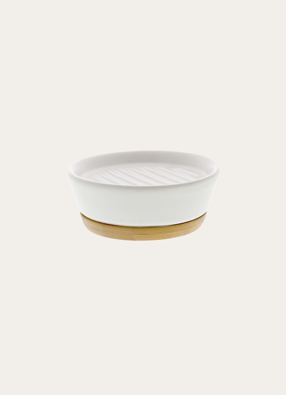 PORTE-SAVON EN GRÈS ET BAMBOU BLANC
