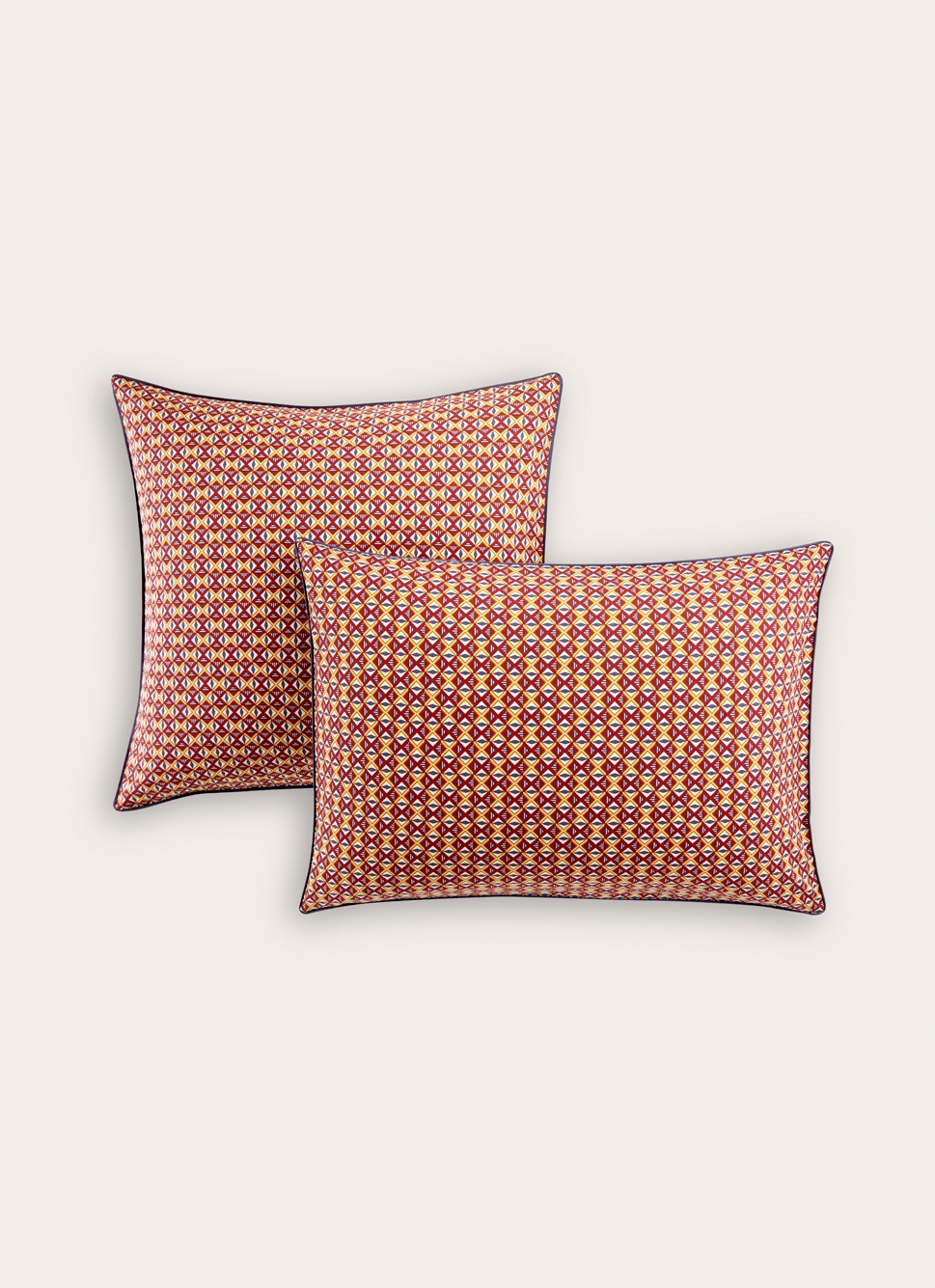 LOT DE 2 TAIES D'OREILLER IMPRIMÉ GÉOMÉTRIQUE BORDEAUX