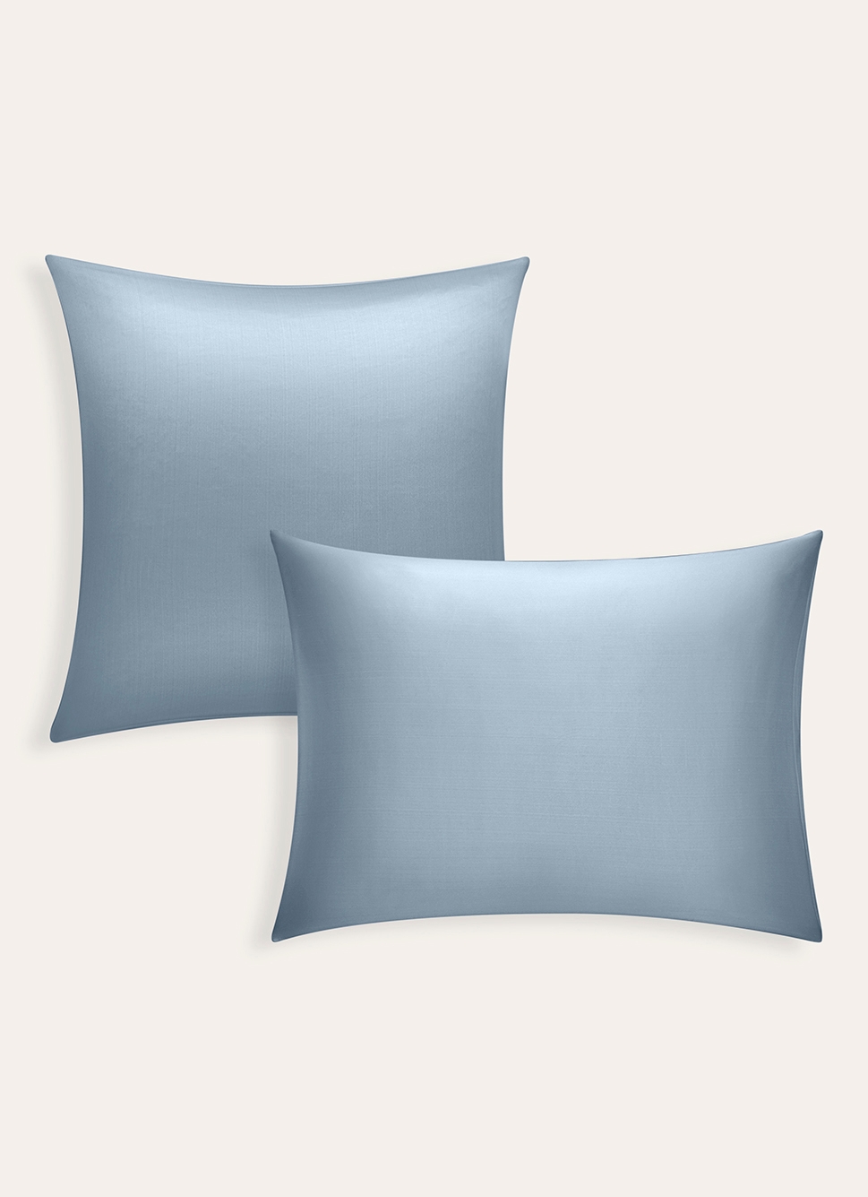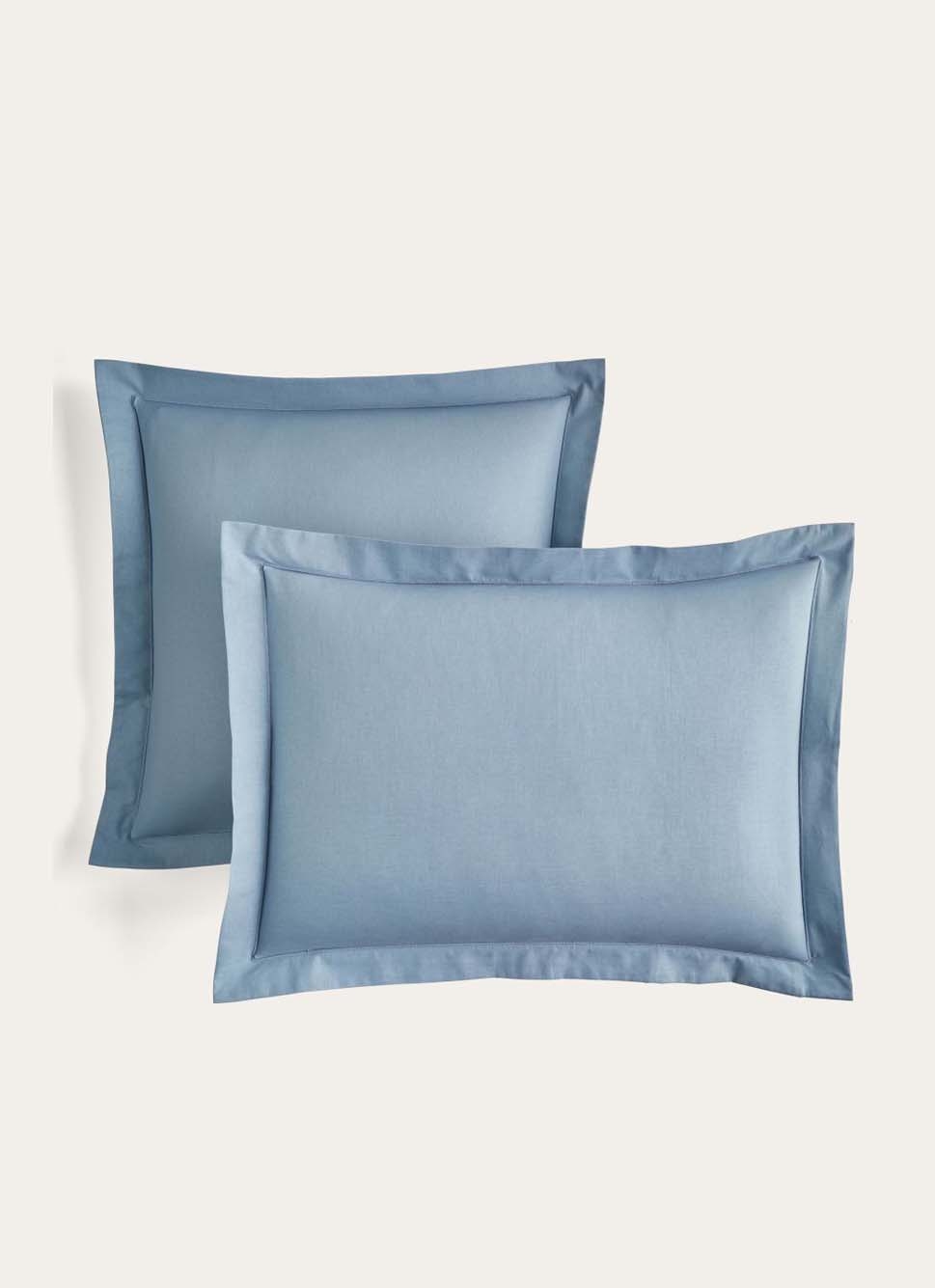 LOT DE 2 TAIES D'OREILLER UNIES CHAMBRAY BLEU