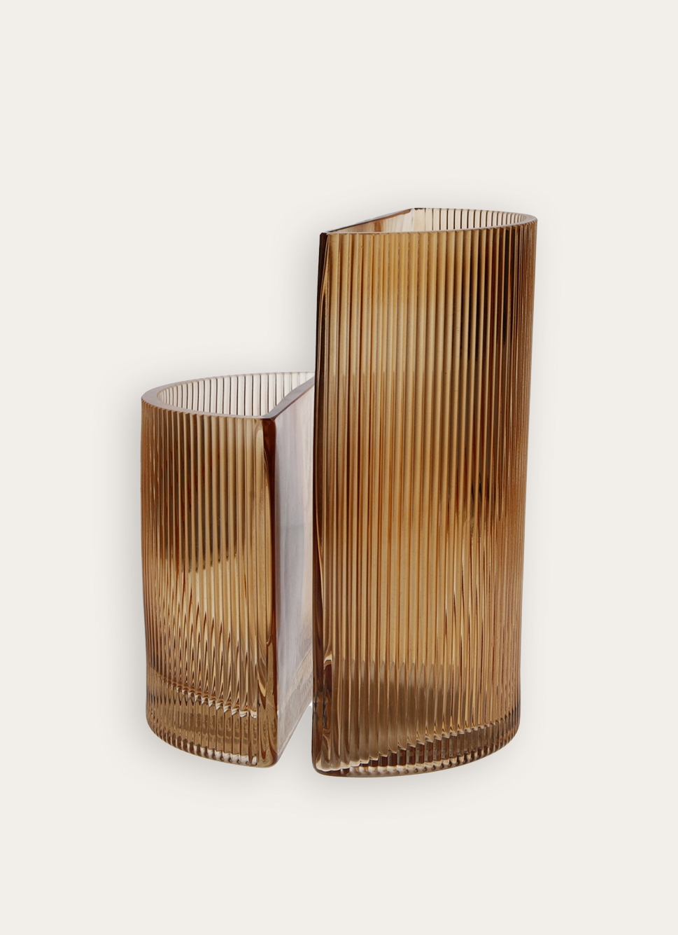VASE EN VERRE FORME ORGANIQUE TRANSPARENT/BANDES MARRON