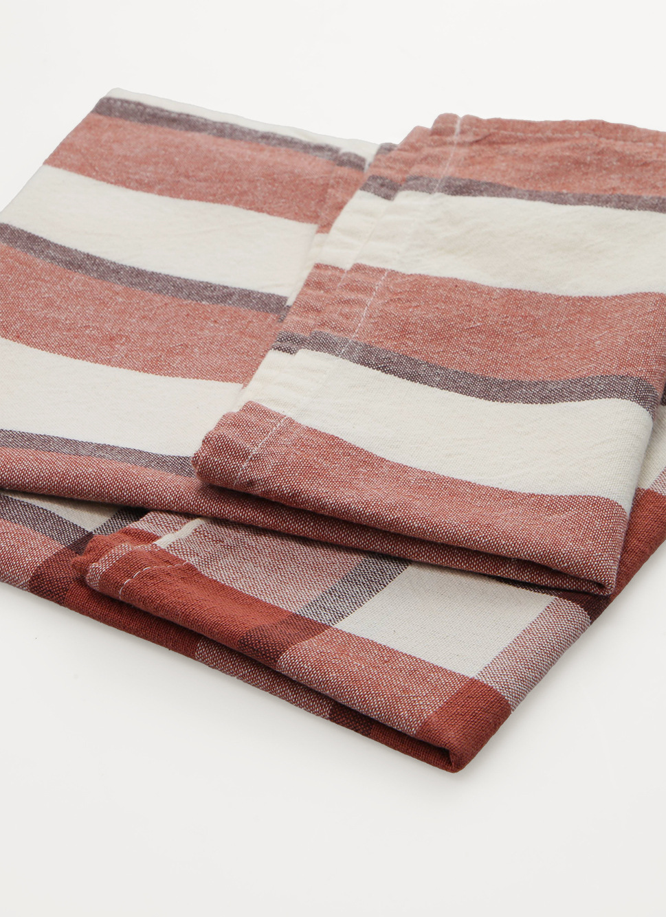LOT DE 2 TORCHONS CARREAUX & RAYURES BRIQUE