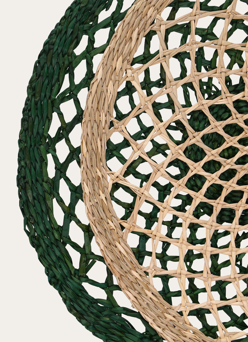 SET DE TABLE EN JONC DE MER TRESSAGE ARTISANAL VERT FONCE