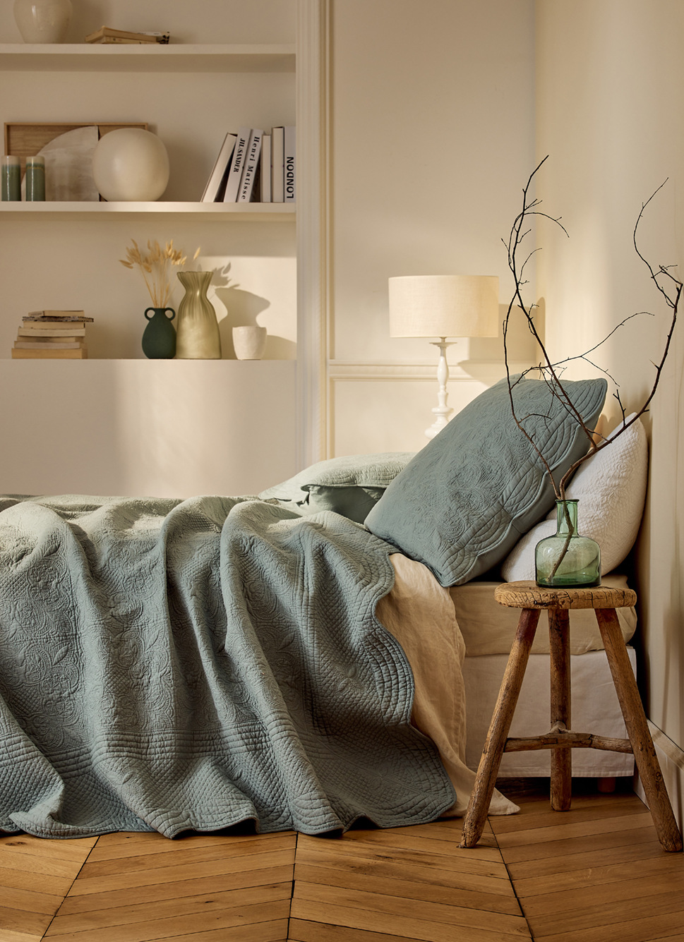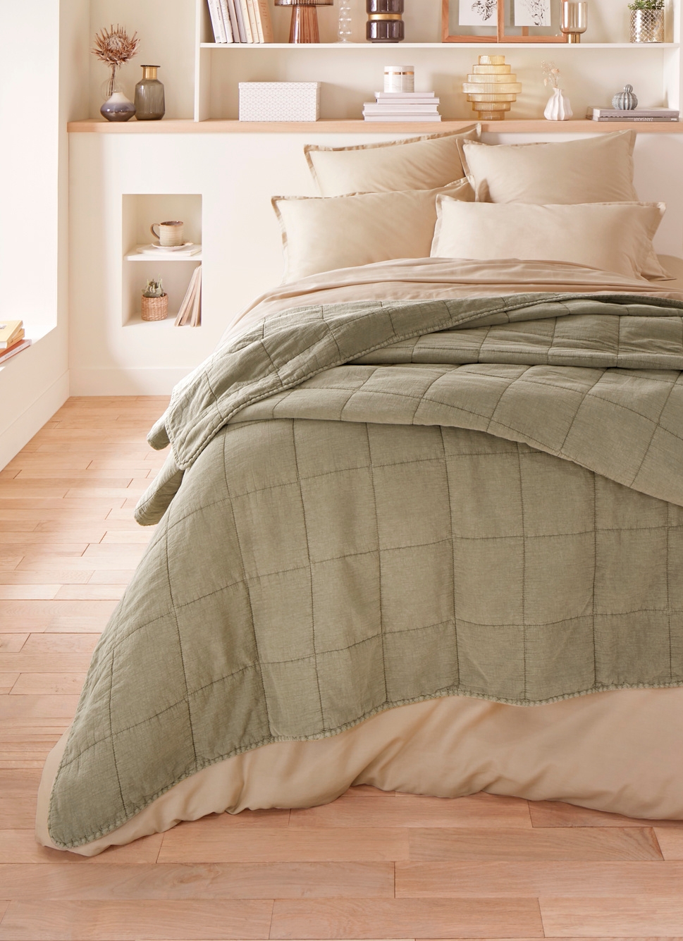COUVRE-LIT UNI EN COTON FLORENCE VERT DE GRIS