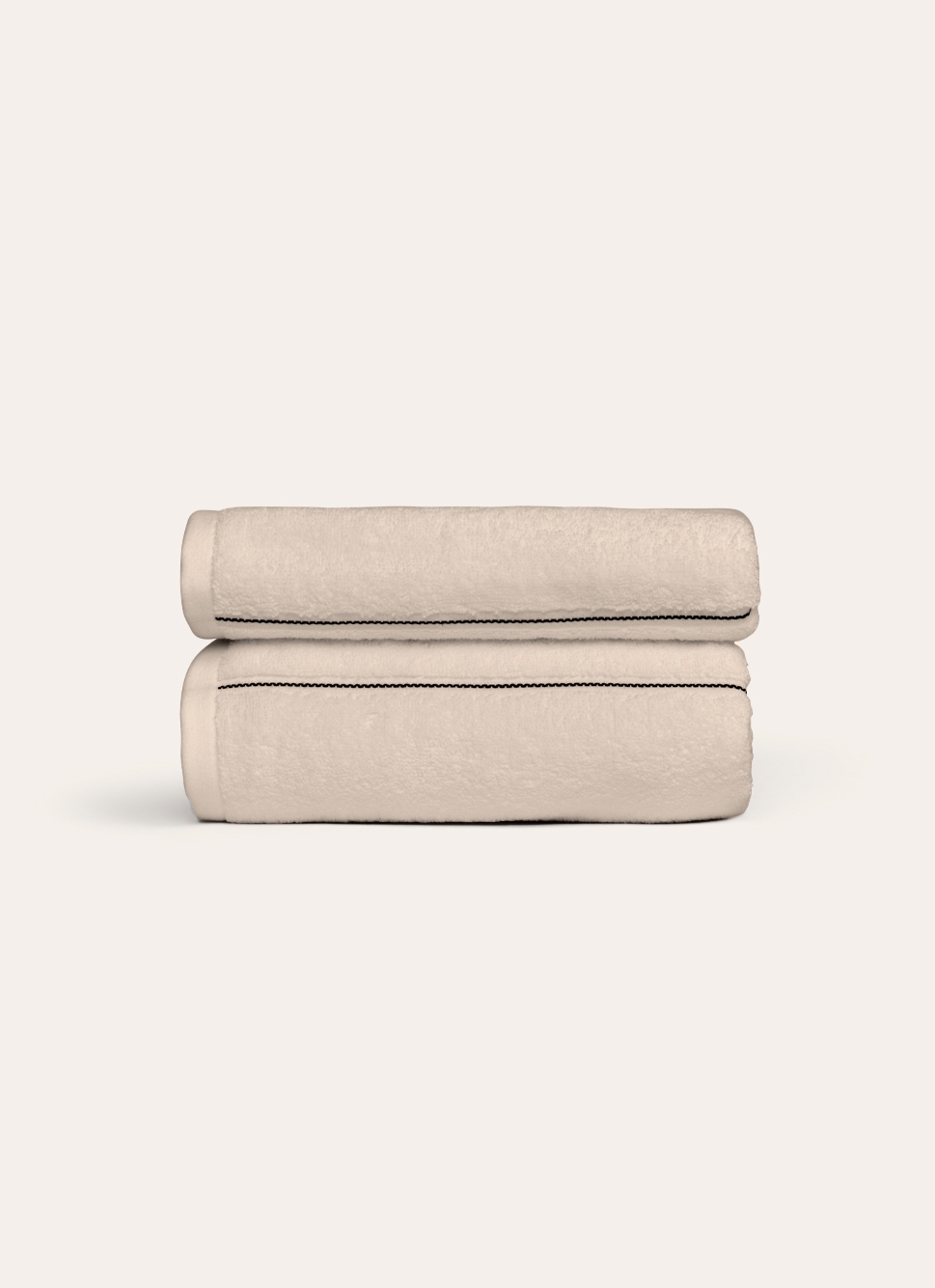 DRAP DE DOUCHE UNI EN COTON AVEC MICRO RAYURE BEIGE/NOIR