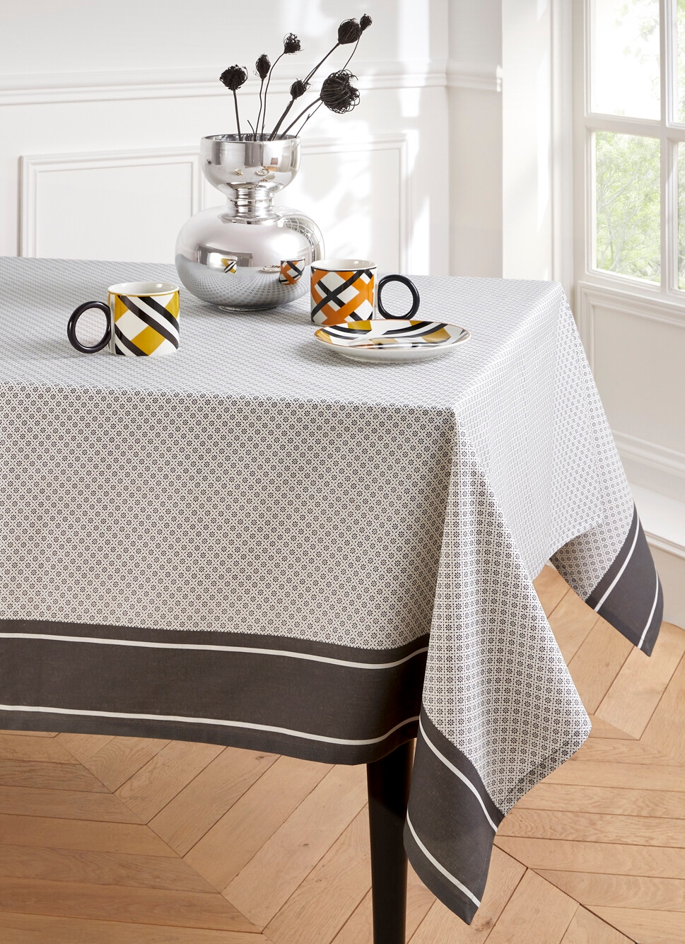 NAPPE EN COTON ENDUITE MOTIF FANTAISIE BLANC/GRIS