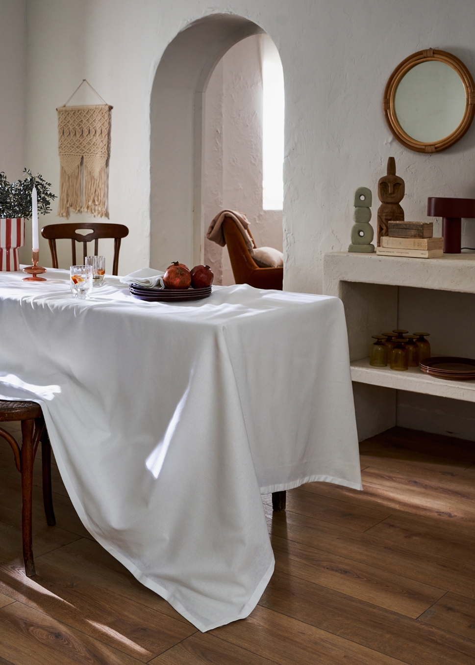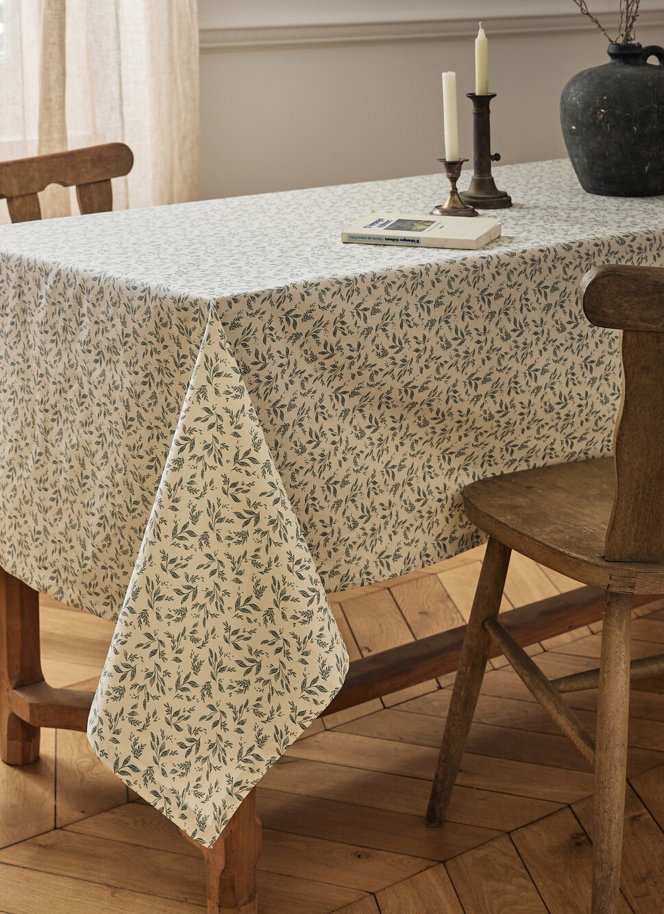 NAPPE EN COTON IMPRIMÉ MOTIF FLORAL ECRU