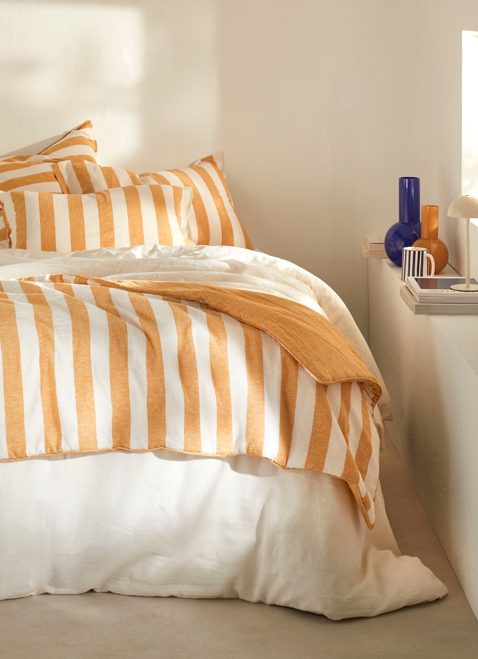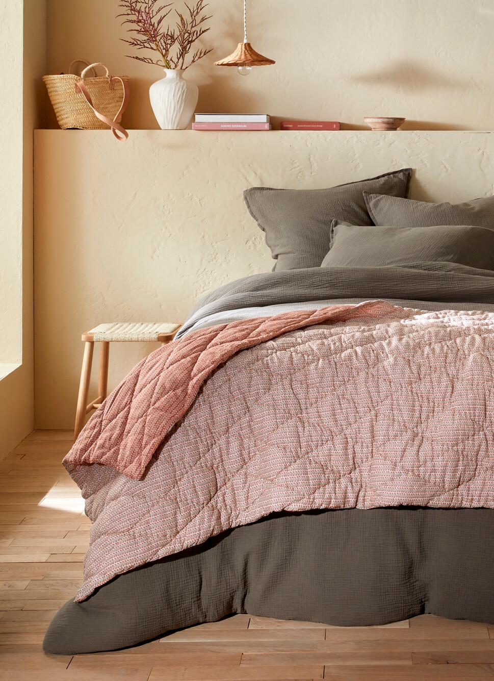 ÉDREDON MATELASSÉ EN MÉTIS COTON ET LIN CAFÉ MOUTARDE