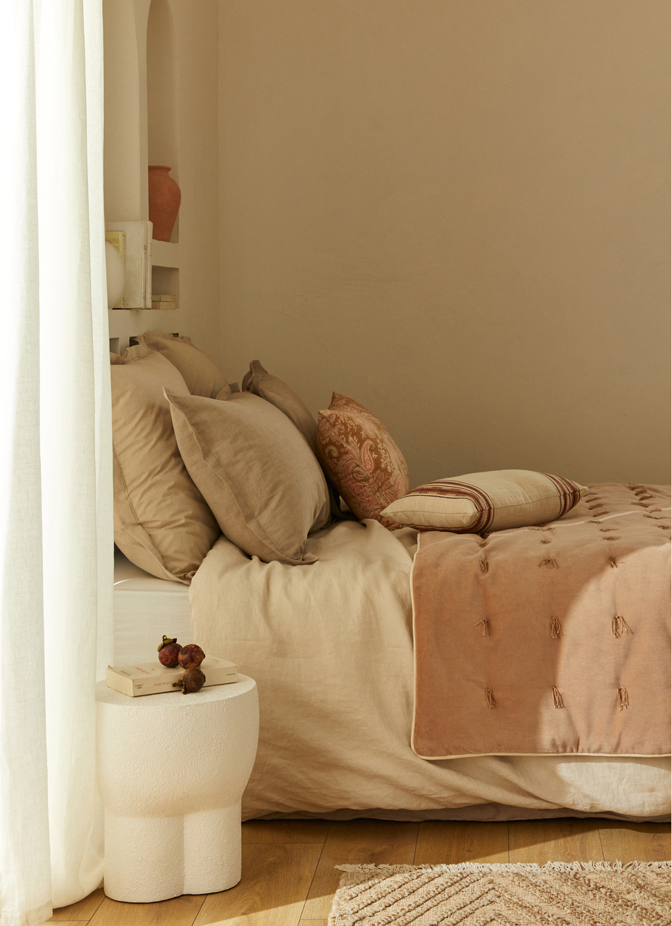 COUVRE-LIT EN COTON GRATTÉ UNI BEIGE