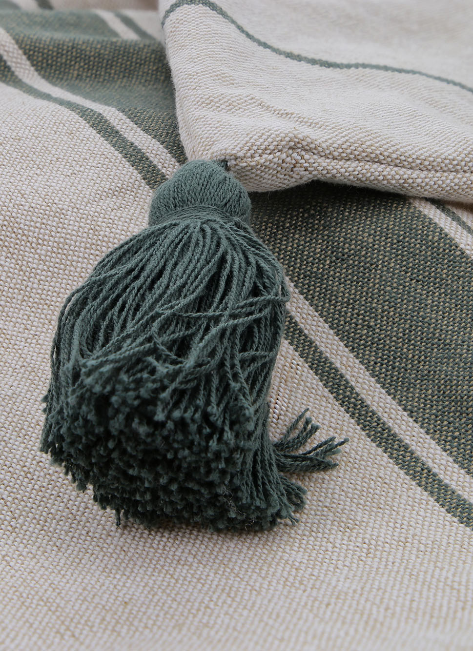 COUSSIN TEXTURÉ à RAYURES AVEC POMPONS BEIGE