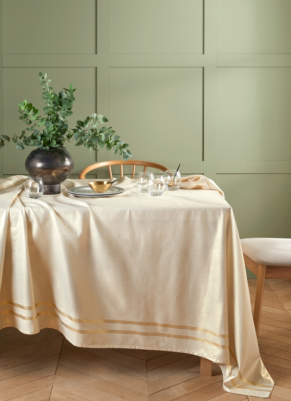 NAPPE PLISSÉE CENTRE DE TABLE AVEC BRODERIES VERT