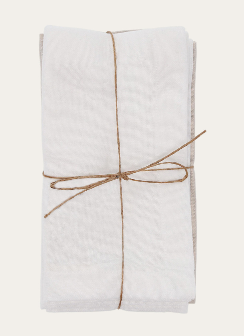LOT 4 SERVIETTES EN COTON BLANC/BEIGE