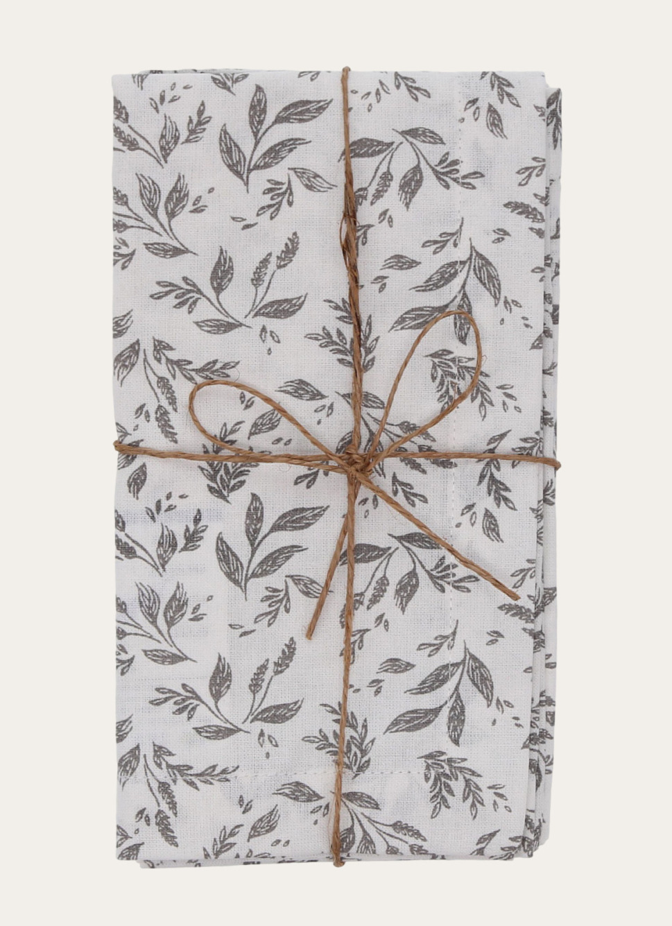 LOT DE 2 SERVIETTES DE TABLE EN COTON IMPRIMÉ BLANC/GRIS