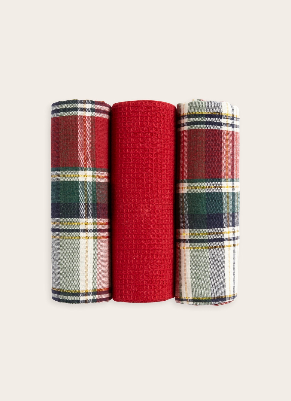 SAC DE 3 TORCHONS TARTAN BRILL ROUGE